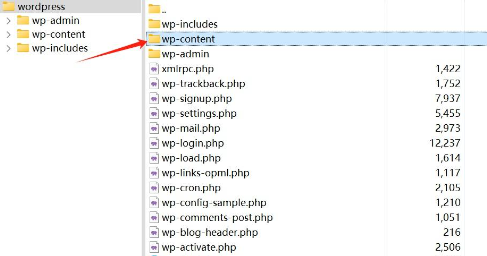 解压后删除 wp-content 这个目录(这个目录是我们的用户文件,例如主题插件上传的图片等,如果不删除直接覆盖,那么可能导致这些数据消失…)。